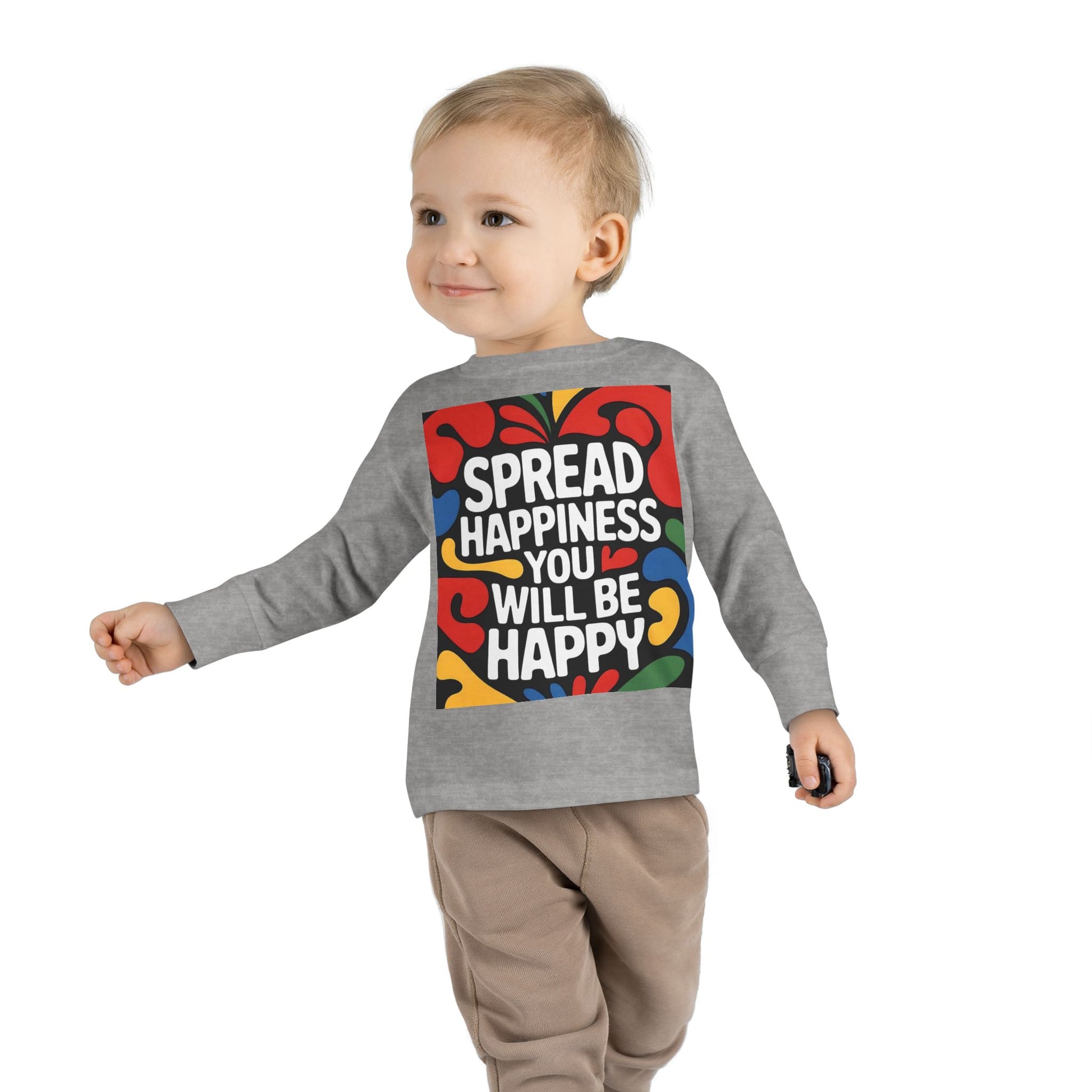 Lion's Main Apparel Toddler Long Sleeve Tee - "Spread Happiness" Graphic Tee for Kids